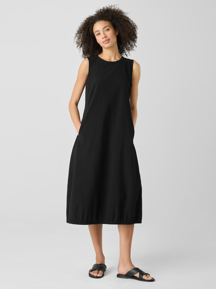 This dress has a secret superpower: structure + comfort = magic. The Organic Cotton Pucker Lantern Dress is one of those silhouettes that looks tailored but feels like a day off. Its unique lantern shape gives it an architectural vibe without being fussy.